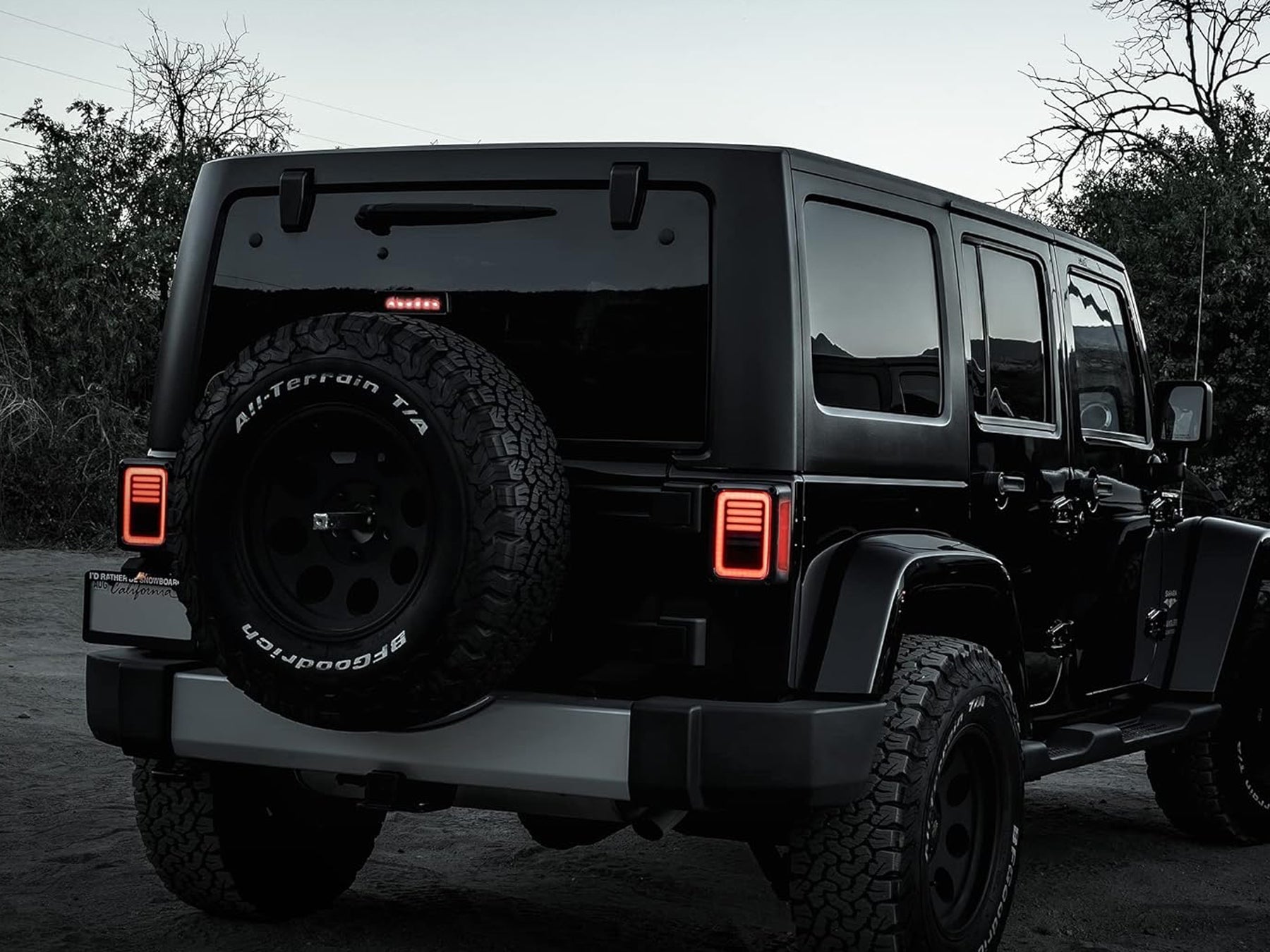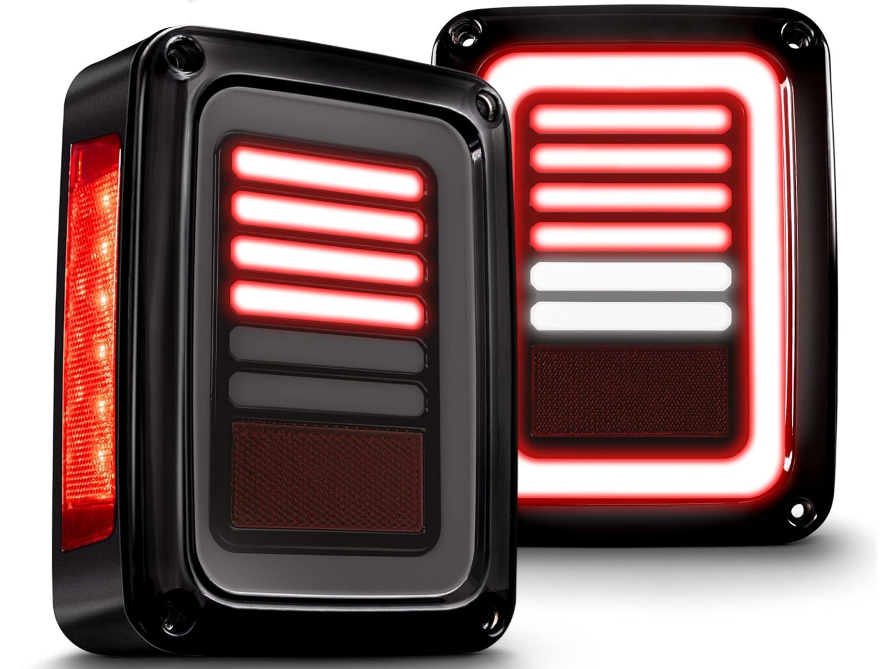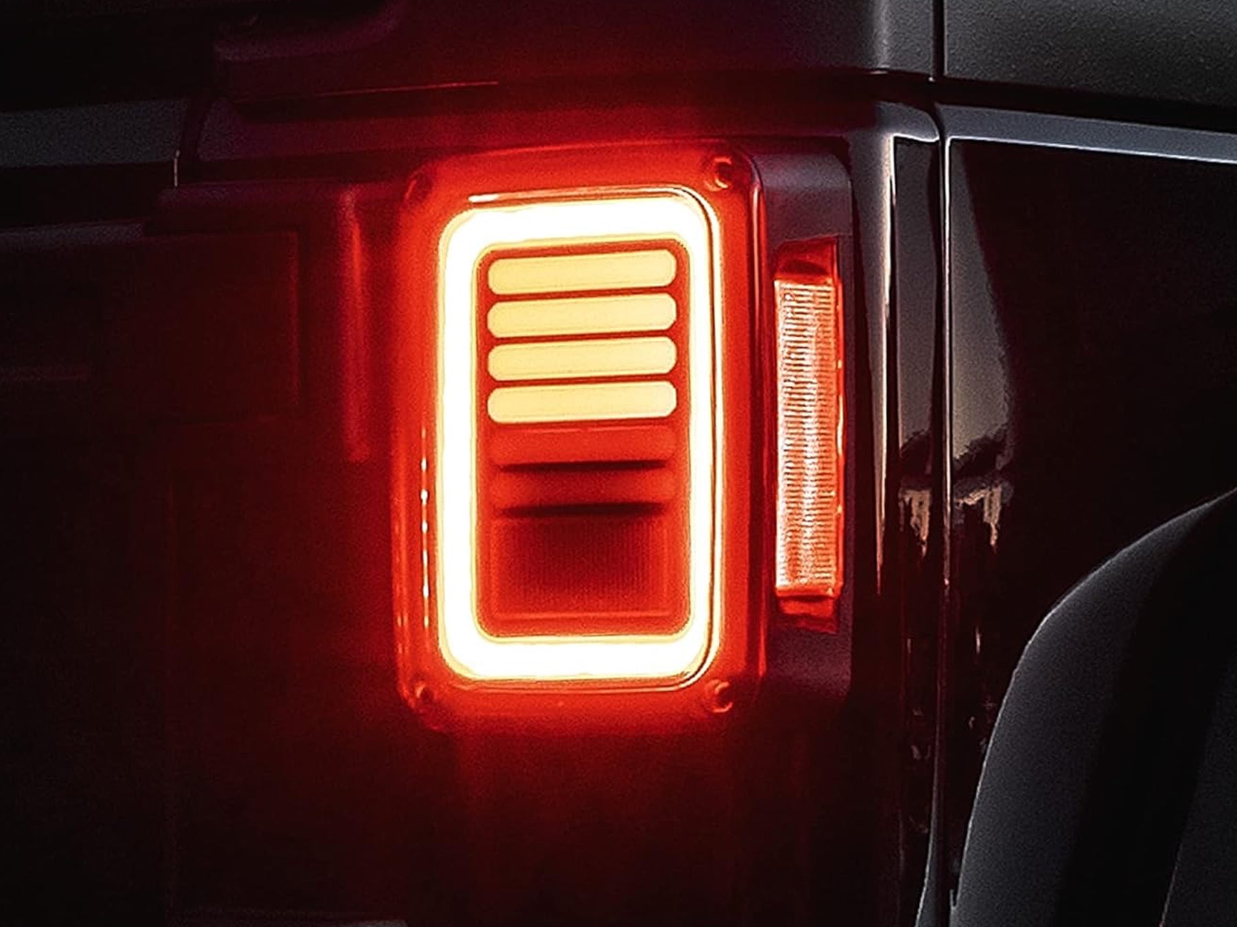 Stops traseros en led de lujo para Jeep Wrangler 2007 - 2018, dale un aspecto de lujo y exclusivo a tu camioneta, focos en led tipo neos color rojo, reversa en led color blanco y direccional en led secuencial color amarillo, pachas originales sin necesidad de hacer modificaciones, facil instalacion.