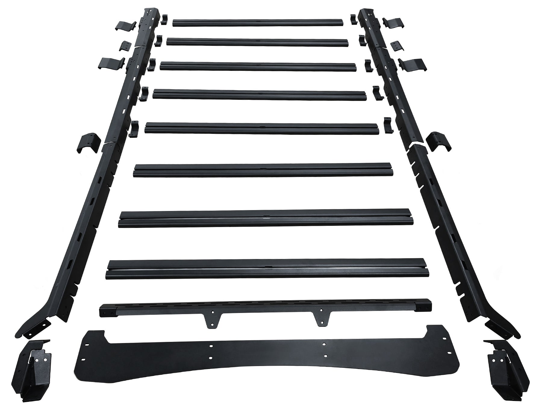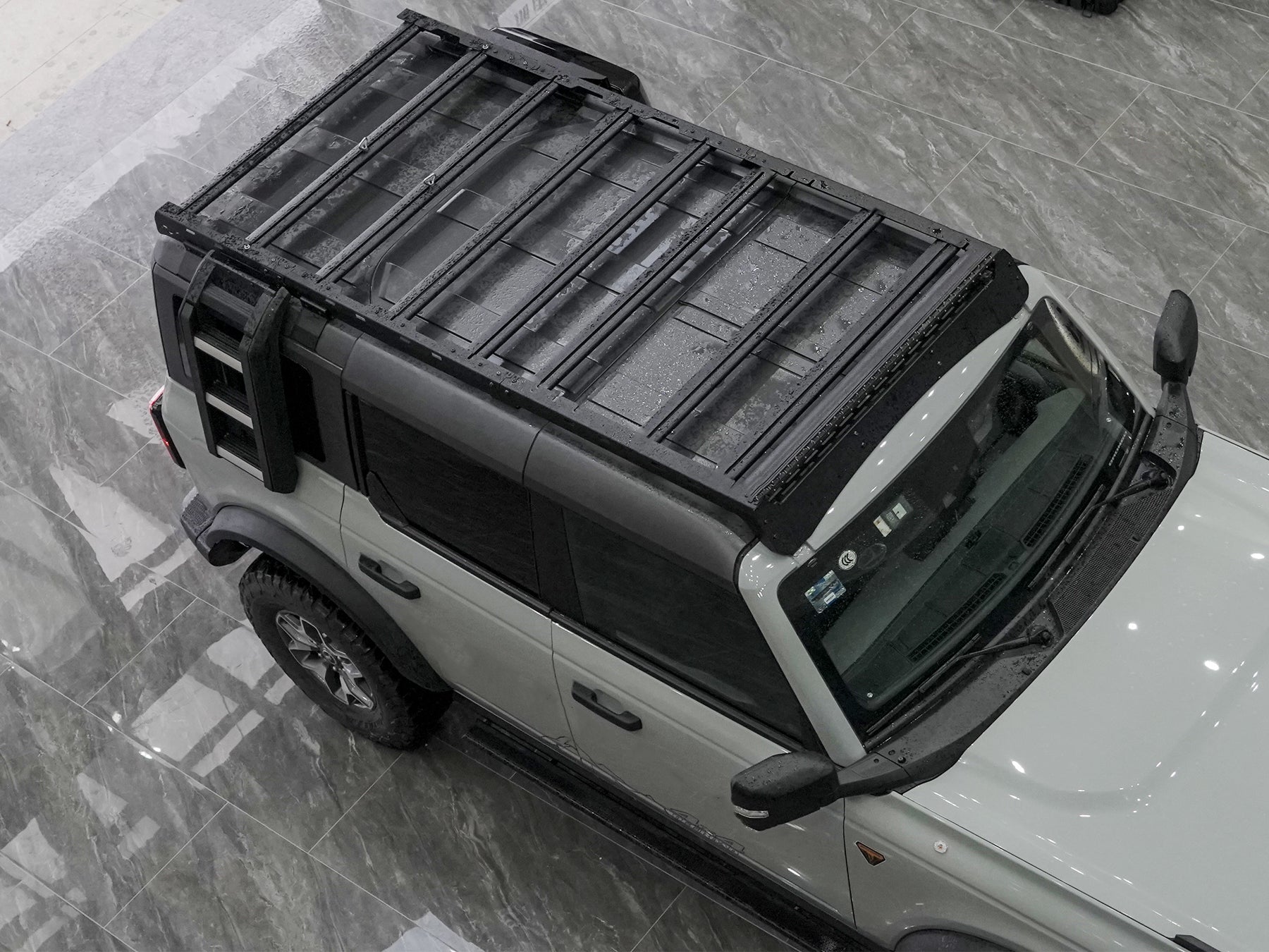 Canasta o parrilla portaequipaje de techo para Ford Bronco 2024-2026, con una estructura en aluminio, diseño OFF-ROAD, en la parte interna cuenta con el uso de agarre, bien sea por lazos, cuerdas o pulpos cuando desees llevar carga voluminosa sobre la parrilla.